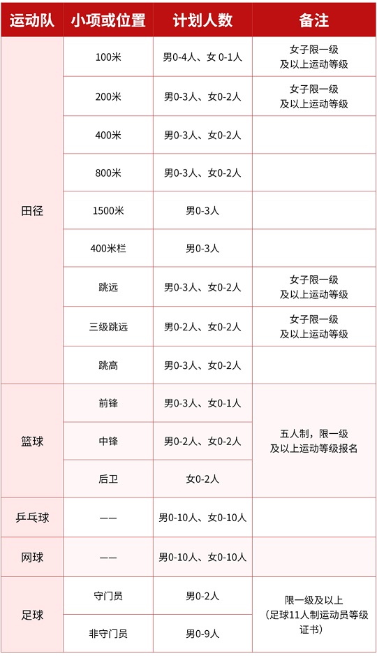 6. 高水平运动员的招生专业计划单列,不占用我校在各省(市、区)公布的招生计划。