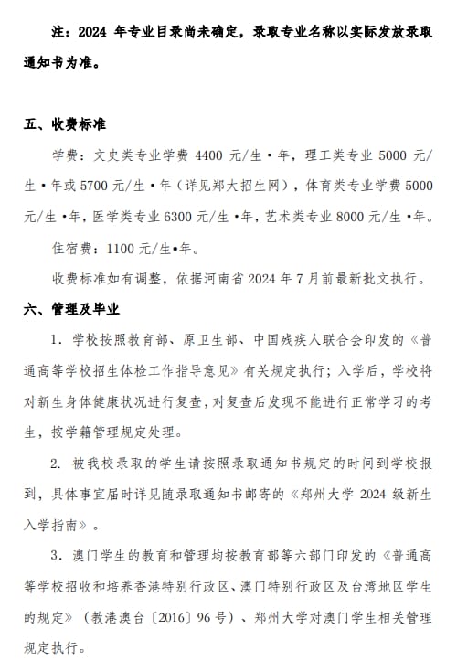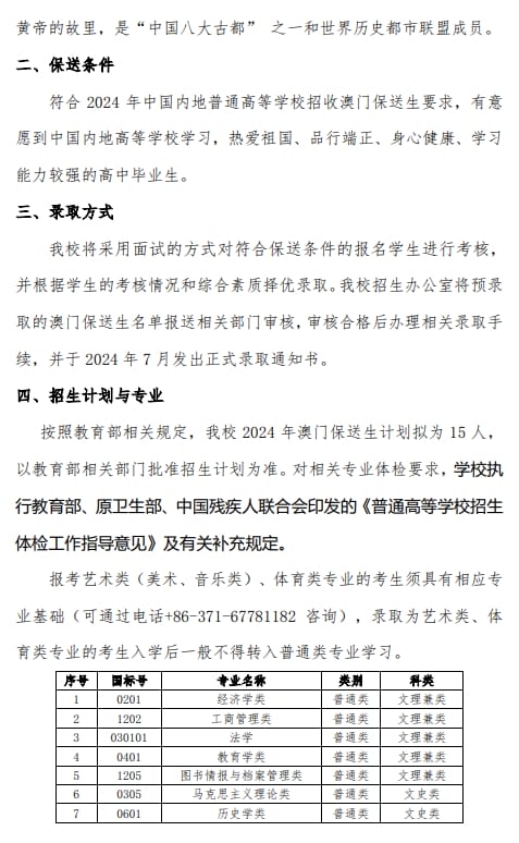 郑州大学2024年澳门保送生招生简章